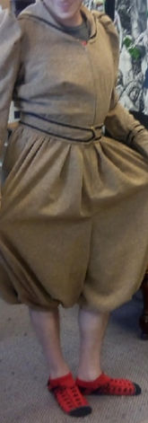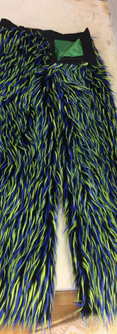 Three different styled pairs of pants were made for this production. I worked on the more "traditional" pair as they had a functioning fly zipper and belt loops.