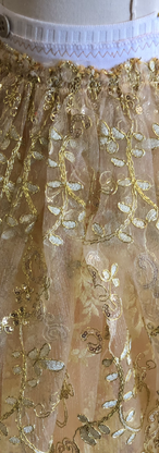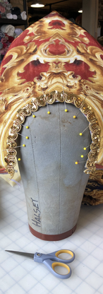 This was one of the Belle's Ball Gowns that Travis designed for the Beauty & The Beast Rental Package. I was tasked with constructed the Skirt while Sabena Sellnow constructed the bodice. To make the skirt gores as full as they were they started at 14' and were ruched down to 28". The skirt was constructed in a way so that each panel could be easily removed and replaced if damaged.