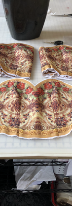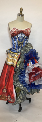 These outfits were worn by a combination of the Dancing Plates & Napkins and the Can Can Girls. The Dancing Plate Bodices and Napkin Bodices & Skirts were worn overtop of the Can Can Bodice and Skirts. All of the fabric was designed by Travis and were sublimated prints. These were all new versions of previous Can Can outfits for Paper Mill Playhouse's Production of Beauty & The Beast.